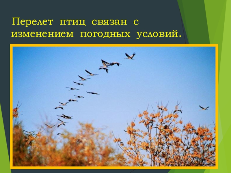 Слайд 12 Перелет птиц связан с изменением погодных условий.
