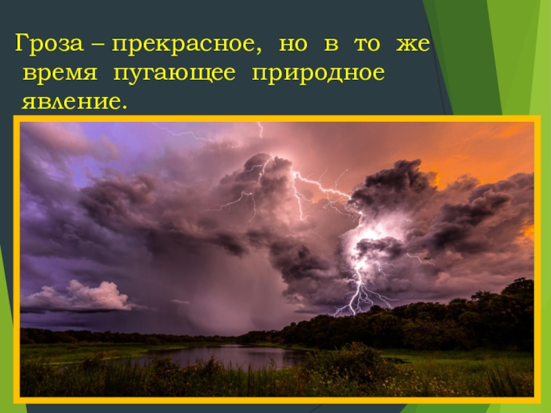 Слайд 4 Гроза – прекрасное, но в то же время пугающее