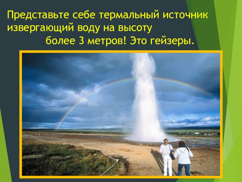 Слайд 10Представьте себе термальный источник извергающий воду на высоту