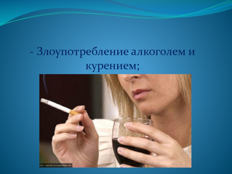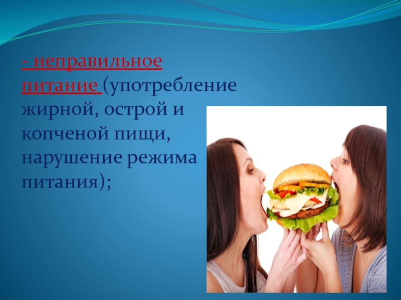 Слайд 6- неправильное питание (употребление жирной, острой и копченой пищи, нарушение режима