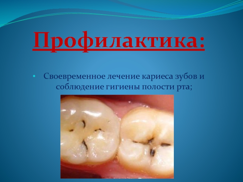 Своевременное лечение кариеса зубов и соблюдение гигиены полости рта;