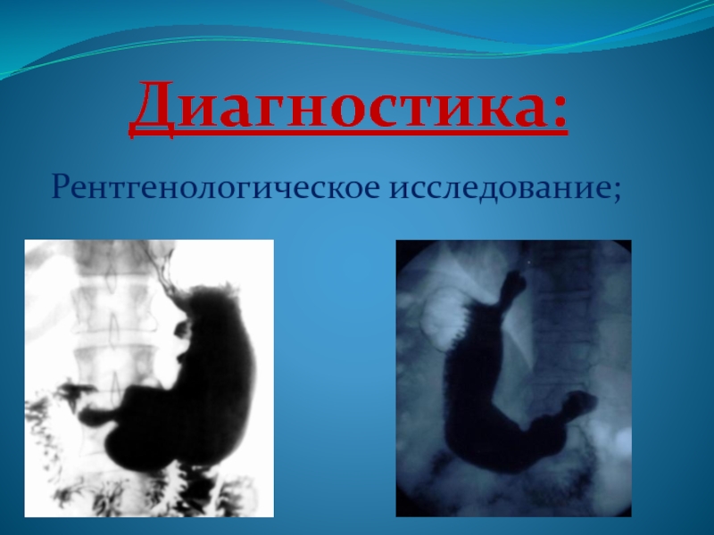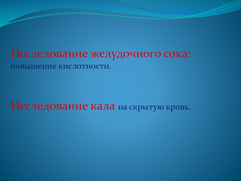 Слайд 19Исследование желудочного сока: повышение кислотности.