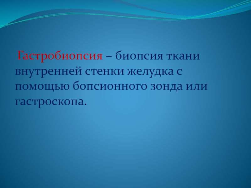 Слайд 16 Гастробиопсия – биопсия ткани внутренней стенки желудка с помощью бопсионного
