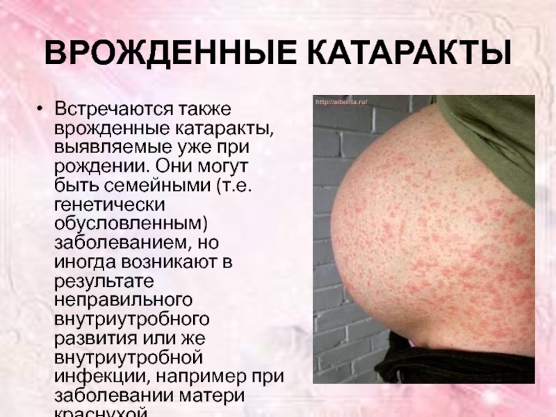 быть семейными (т.е. генетически обусловленным) заболеванием, но иногда возникают в результате неправильного внутриутробного развития или же внутриутробной инфекции, например при заболевании матери краснухой.