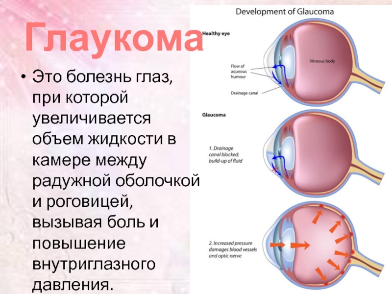 Это болезнь глаз, при которой увеличивается объем жидкости в камере между