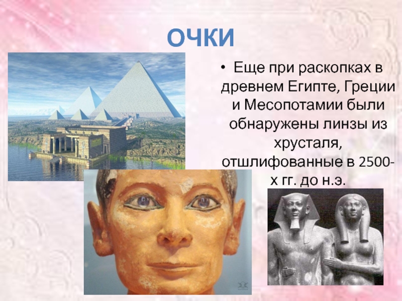 линзы из хрусталя, отшлифованные в 2500-х гг. до н.э.