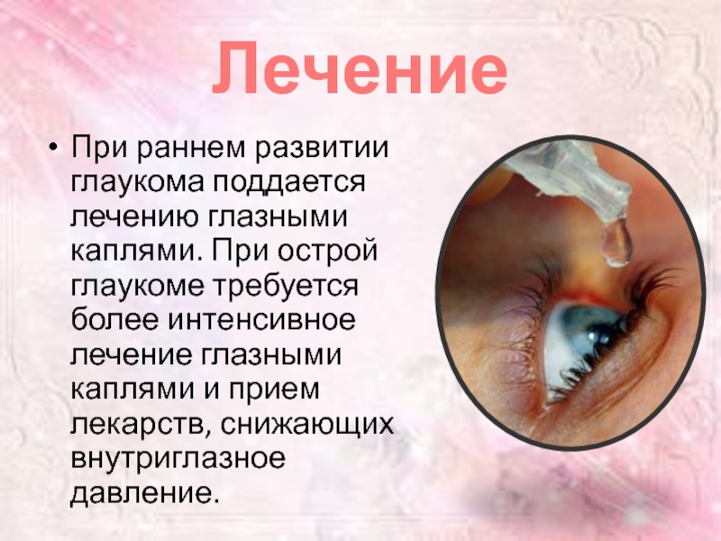 При раннем развитии глаукома поддается лечению глазными каплями. При острой глаукоме
