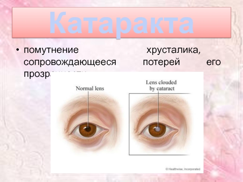 Слайд 27В переводе с греческого языка «катаракта» — «водопад». Чем больше прогрессирует