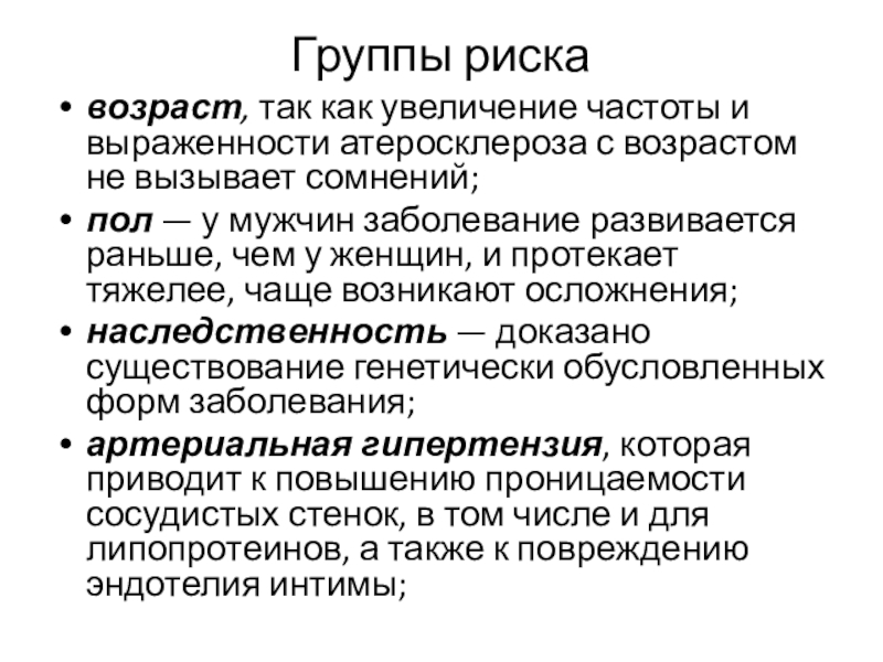 артериальная гипертензия, которая приводит к повышению проницаемости сосудистых стенок, в том числе и для липопротеинов, а также к повреждению эндотелия интимы;