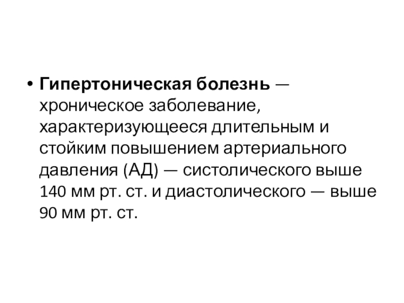 Слайд 16Гипертоническая болезнь — хроническое заболевание, характеризующееся длительным и стойким повышением артериального