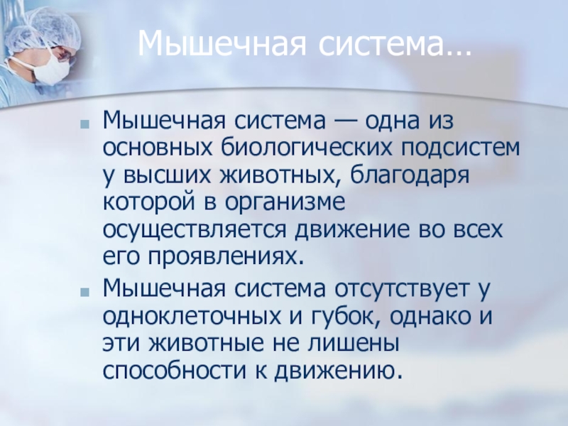 Мышечная система отсутствует у одноклеточных и губок, однако и эти животные не лишены способности к движению.