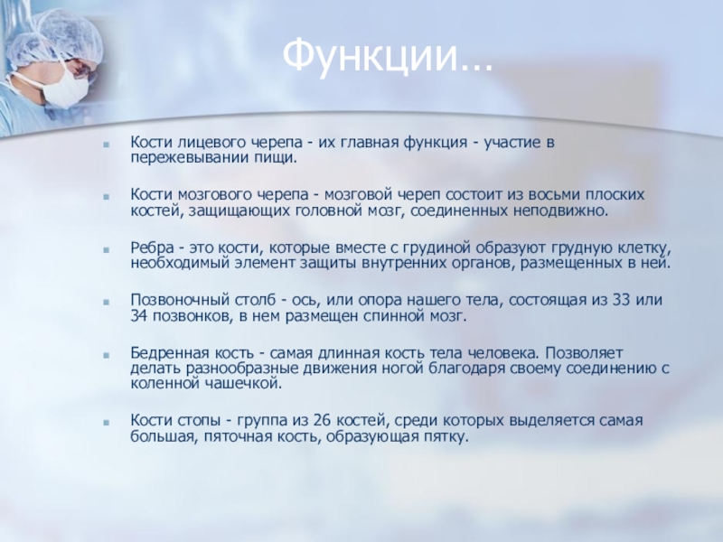 мягким тканям, точкой приложения мышц (рычажная система), вместилищем и защитой внутренних органов.