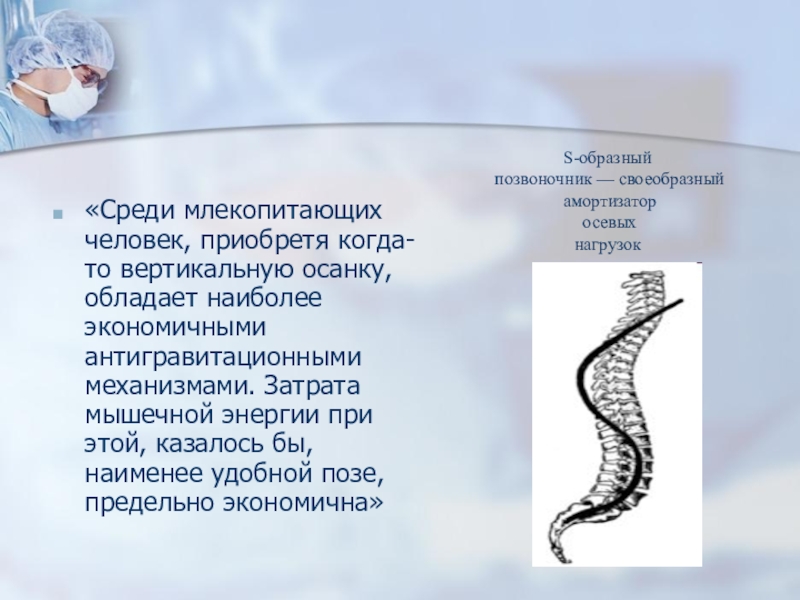 «Среди млекопитающих человек, приобретя когда-то вертикальную осанку, обладает наиболее экономичными антигравитационными
