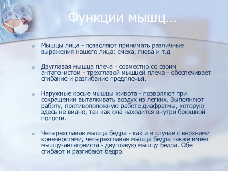 Мышцы лица - позволяют принимать различные выражения нашего лица: смеха,