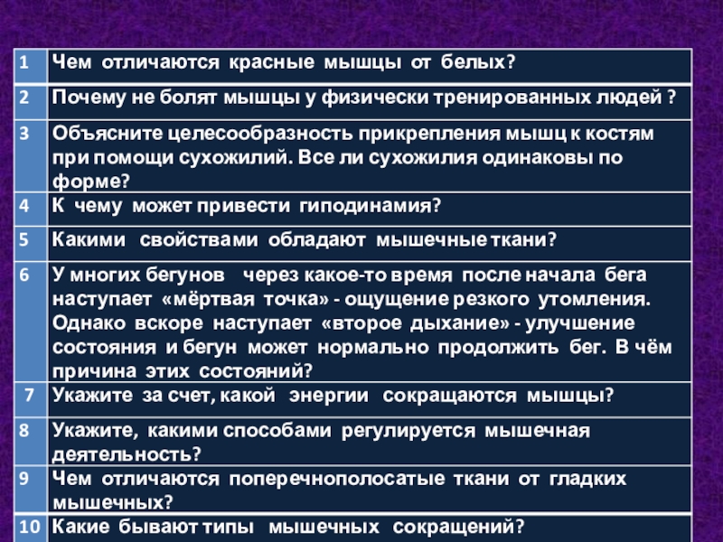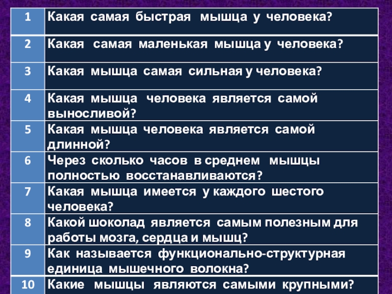 Презентация, доклад по биологии на тему: Зачёт по мышечной системе человека(8 класс)