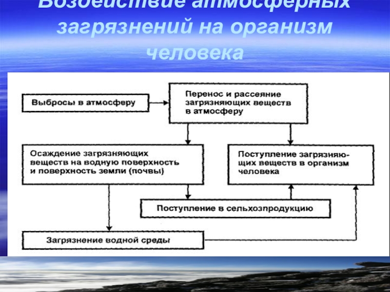 Слайд 6Воздействие атмосферных загрязнений на организм человека