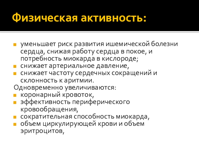 уменьшает риск развития ишемической болезни сердца, снижая работу сердца в