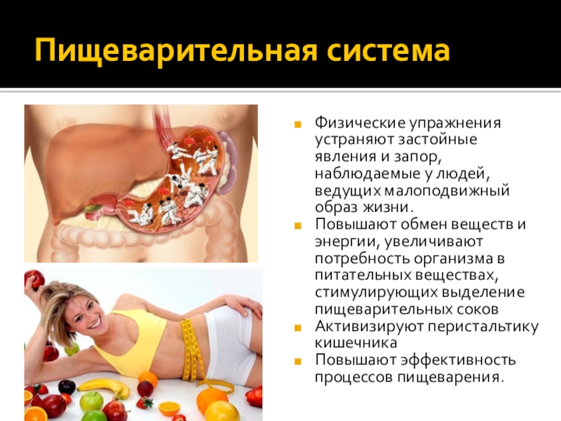 Физические упражнения устраняют застойные явления и запор, наблюдаемые у людей,
