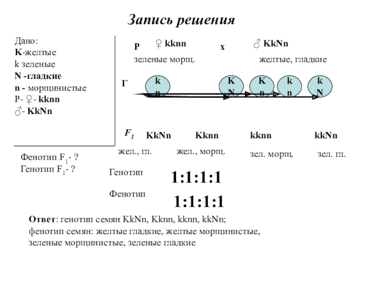 Ответ: генотип семян KkNn, Kknn, kknn, kkNn;