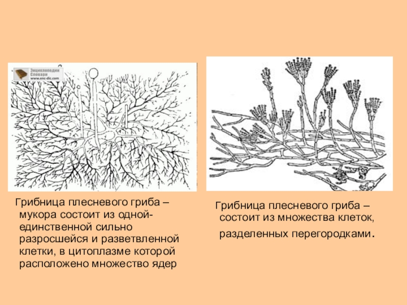 Грибница плесневого гриба – состоит из множества клеток, разделенных перегородками.