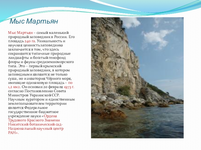 Мыс Мартьян – самый маленький природный заповедник в России. Его