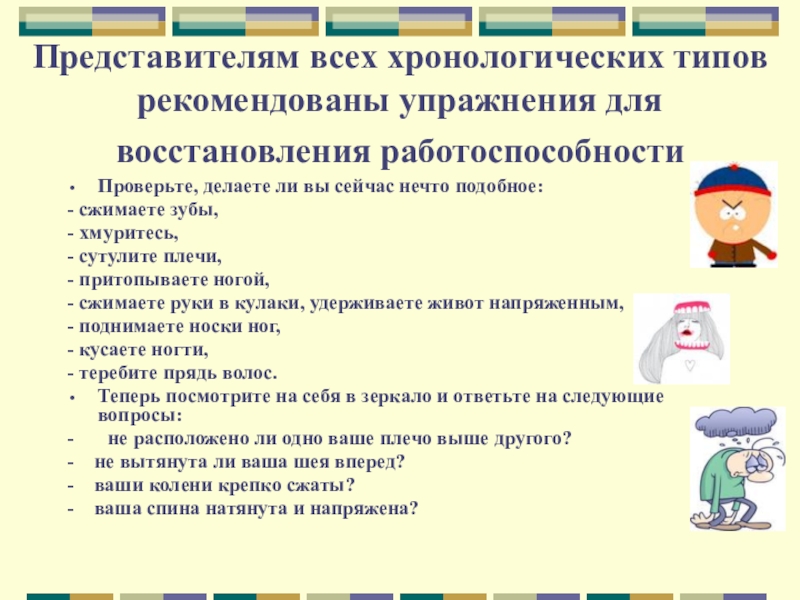 . Для каждого из этих типов подъем интеллектуальной и физической активности наступает в соответствующее время.