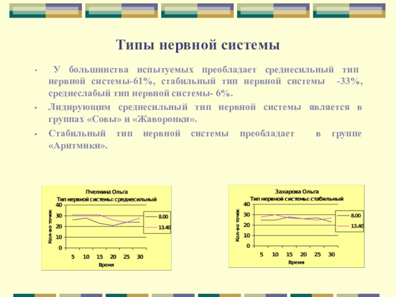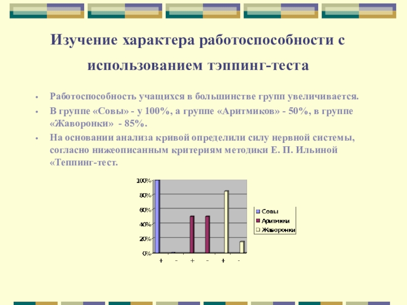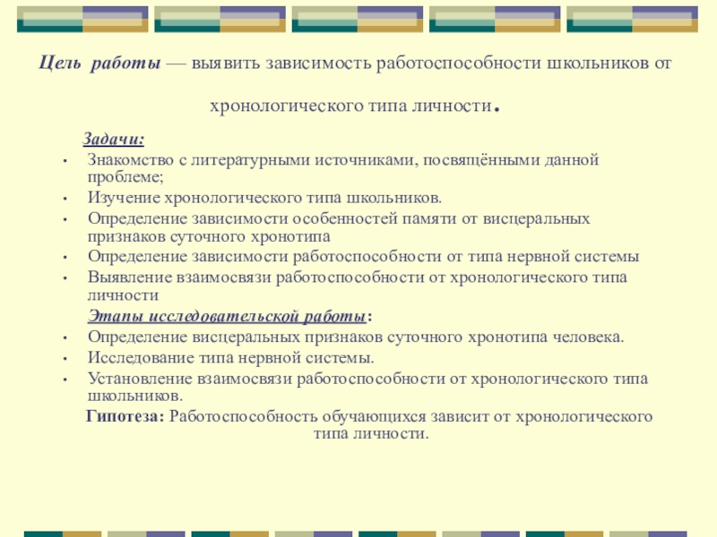 Выявление взаимосвязи работоспособности от хронологического типа личности