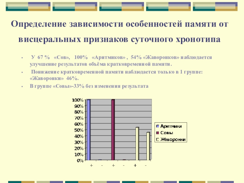 Определение зависимости особенностей памяти от висцеральных признаков суточного хронотипа
