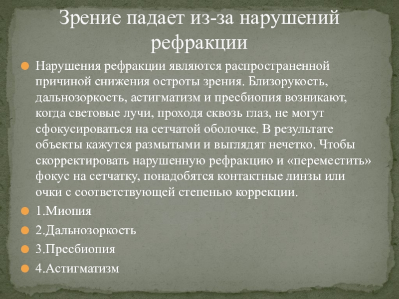 Зрение падает из-за нарушений рефракции