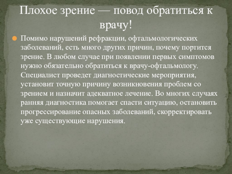 Плохое зрение — повод обратиться к врачу!