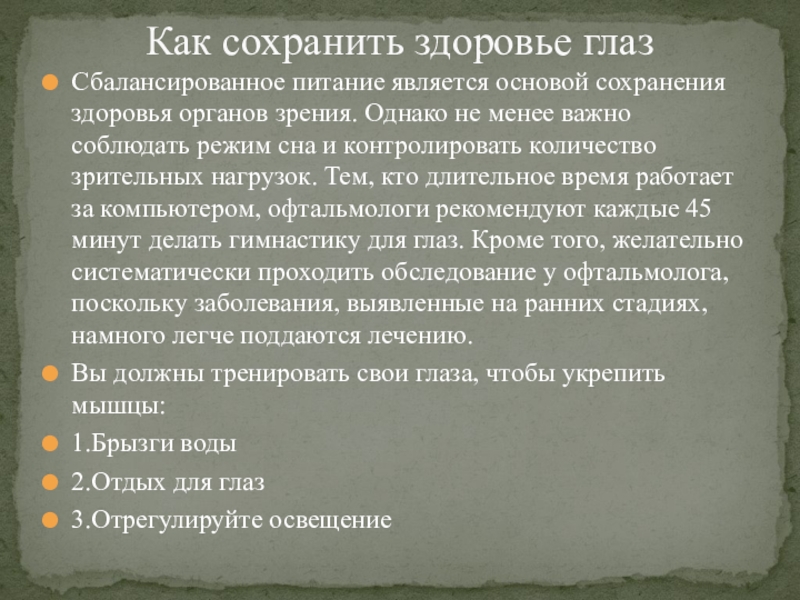 Как сохранить здоровье глаз