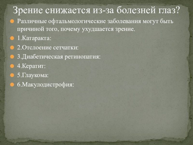 Зрение снижается из-за болезней глаз?