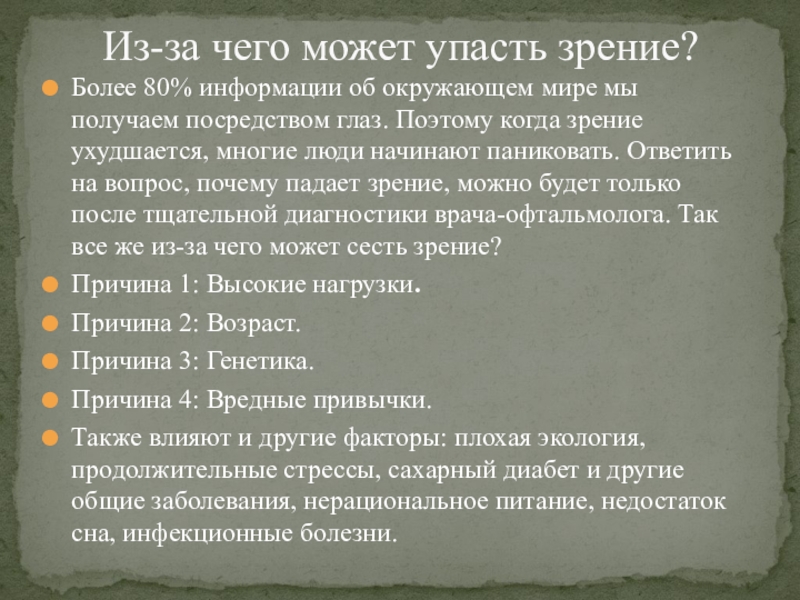 Из-за чего может упасть зрение?