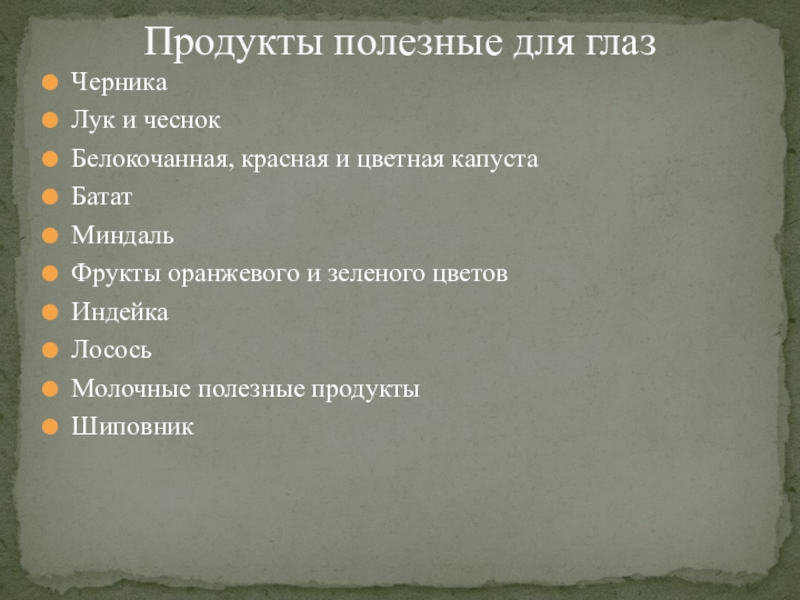 Продукты полезные для глаз