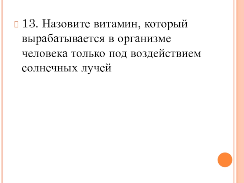 Слайд 8913. Назовите витамин, который вырабатывается в организме человека только под воздействием