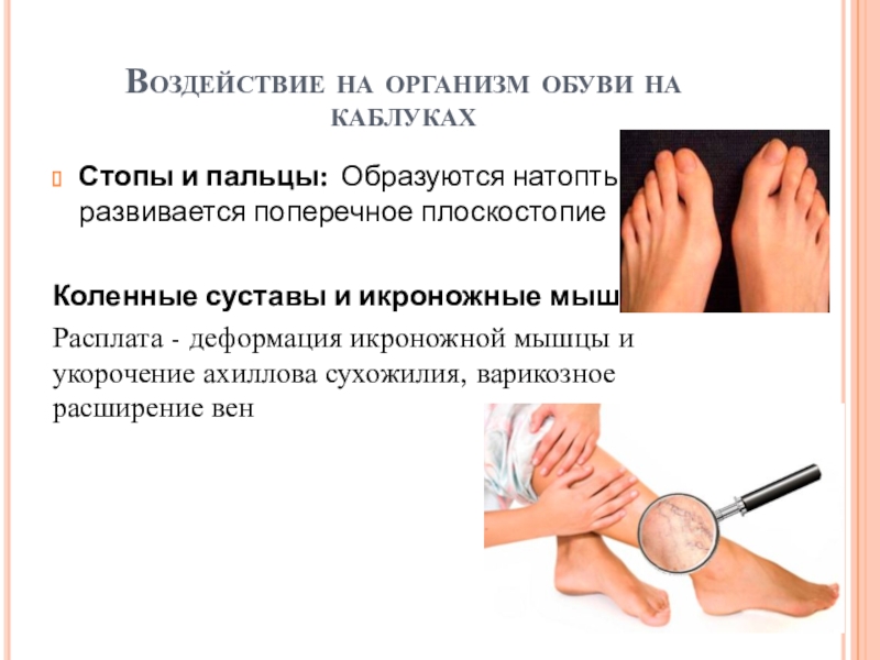 Расплата - деформация икроножной мышцы и укорочение ахиллова сухожилия, варикозное расширение вен