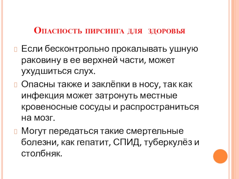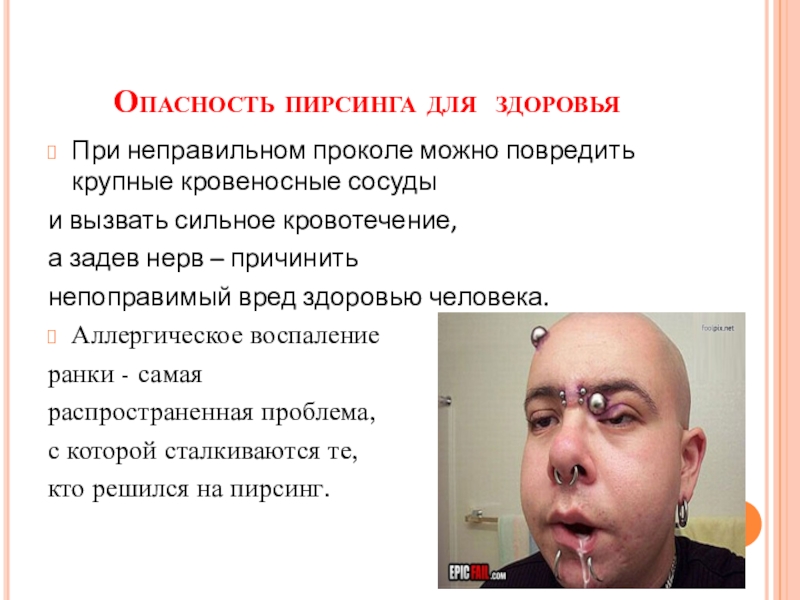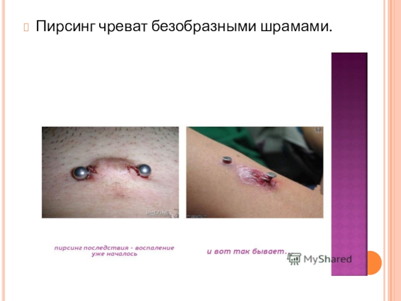 Слайд 17Пирсинг чреват безобразными шрамами.