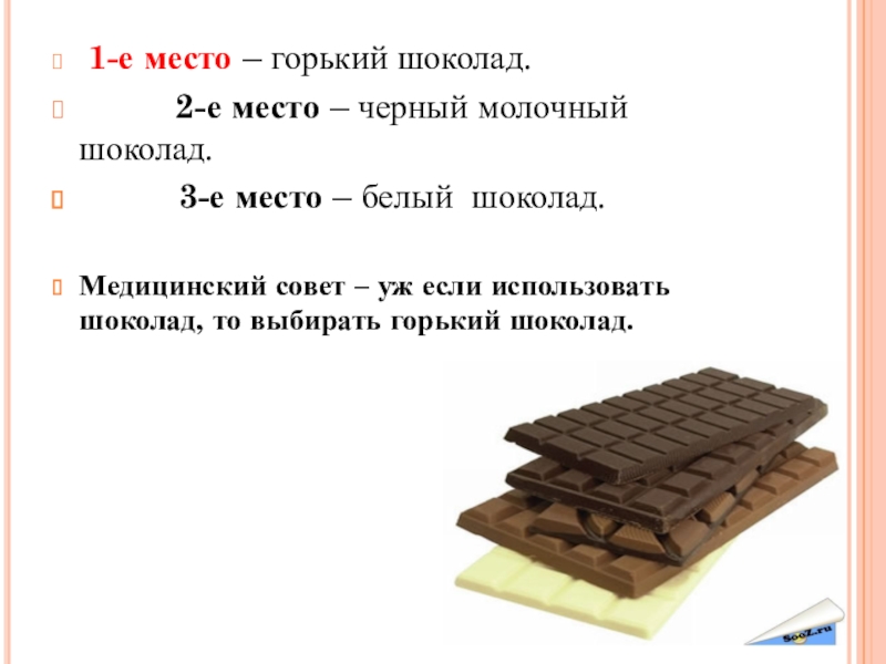 Медицинский совет – уж если использовать шоколад, то выбирать горький шоколад.