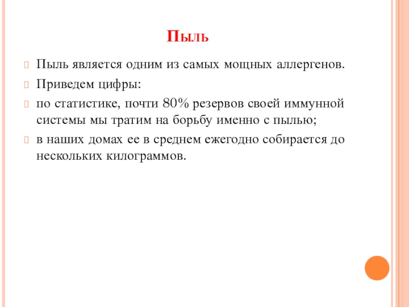 80% резервов своей иммунной системы мы тратим на борьбу именно с пылью;