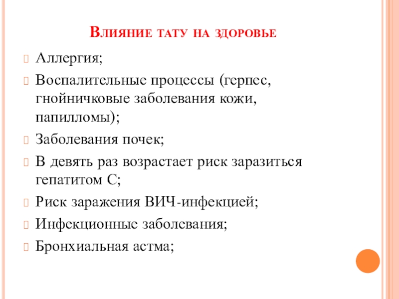 Могут передаться такие смертельные болезни, как гепатит, СПИД, туберкулёз и столбняк.