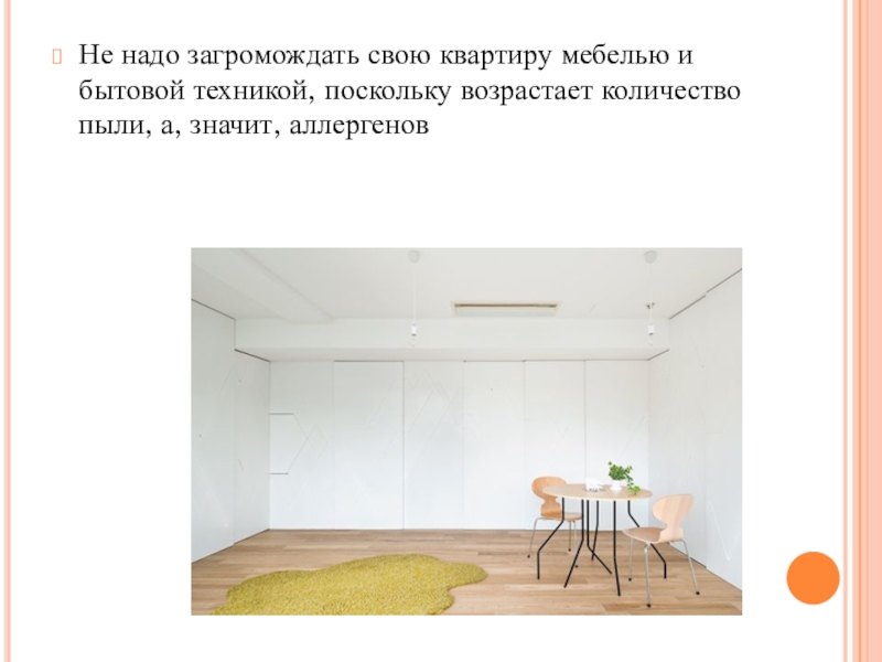 Слайд 63Не надо загромождать свою квартиру мебелью и бытовой техникой, поскольку возрастает