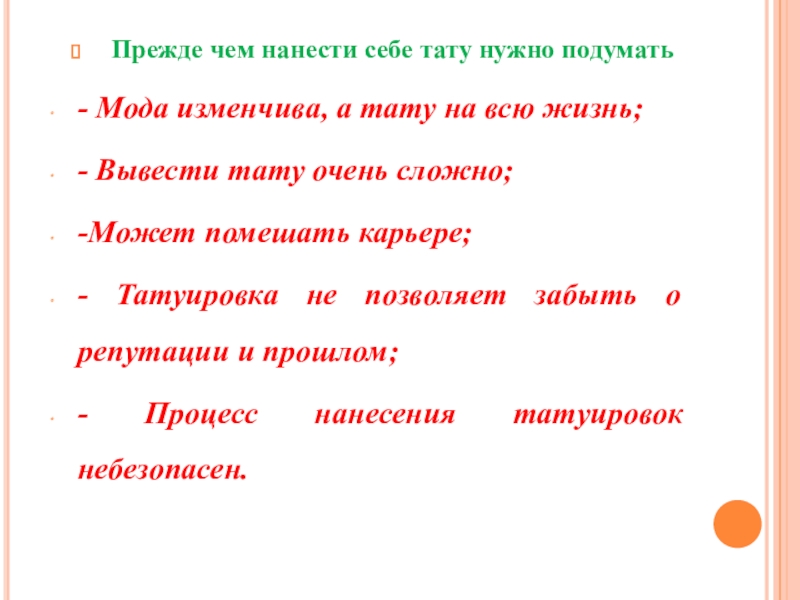 Слайд 20Прежде чем нанести себе тату нужно подумать
