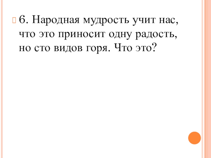 Слайд 756. Народная мудрость учит нас, что это приносит одну радость, но
