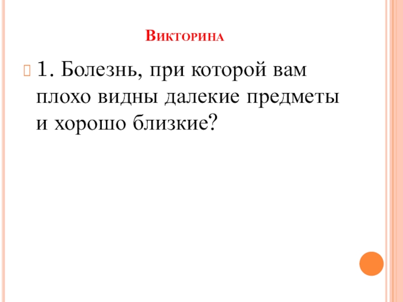 1. Болезнь, при которой вам плохо видны далекие предметы и хорошо