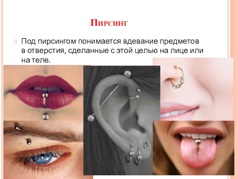 Под пирсингом понимается вдевание предметов в отверстия, сделанные с этой целью