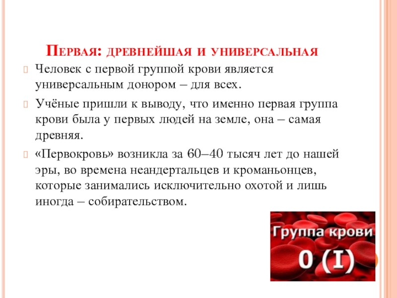 Учёные пришли к выводу, что именно первая группа крови была у первых людей на земле, она – самая древняя.