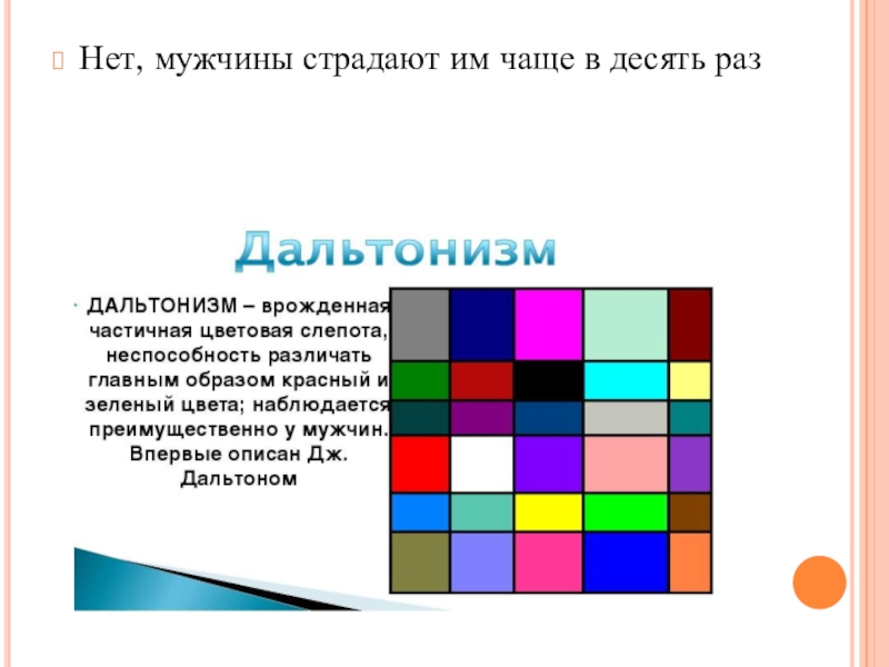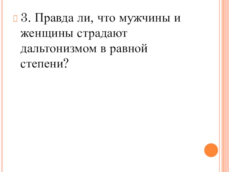 Слайд 693. Правда ли, что мужчины и женщины страдают дальтонизмом в равной