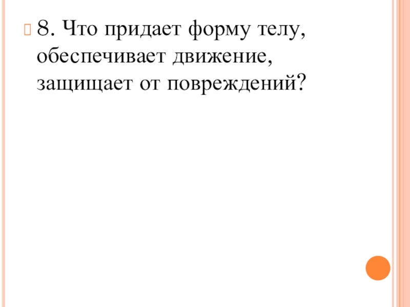 Слайд 798. Что придает форму телу, обеспечивает движение, защищает от повреждений?