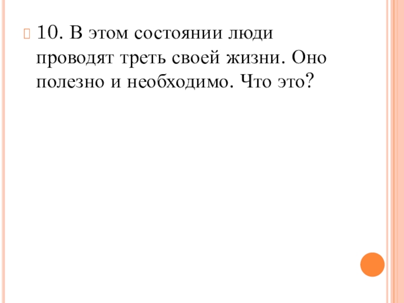 Слайд 8310. В этом состоянии люди проводят треть своей жизни. Оно полезно