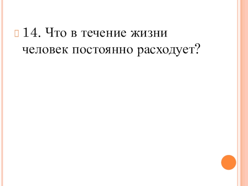 Слайд 9114. Что в течение жизни человек постоянно расходует?